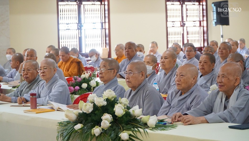 Theo đó, trong khuôn khổ khóa bồi dưỡng về luật, các pháp yết-ma, nghi lễ từ ngày 24 - 25-4, do Phân ban Ni giới T.Ư tổ chức, Hòa thượng Thích Lệ Trang đã chia sẻ với 400 vị Ni thuộc 55 đơn vị Phân ban Ni giới tỉnh thành về vai trò của giới sư, thầy nghiệp sư trong đại giới đàn.