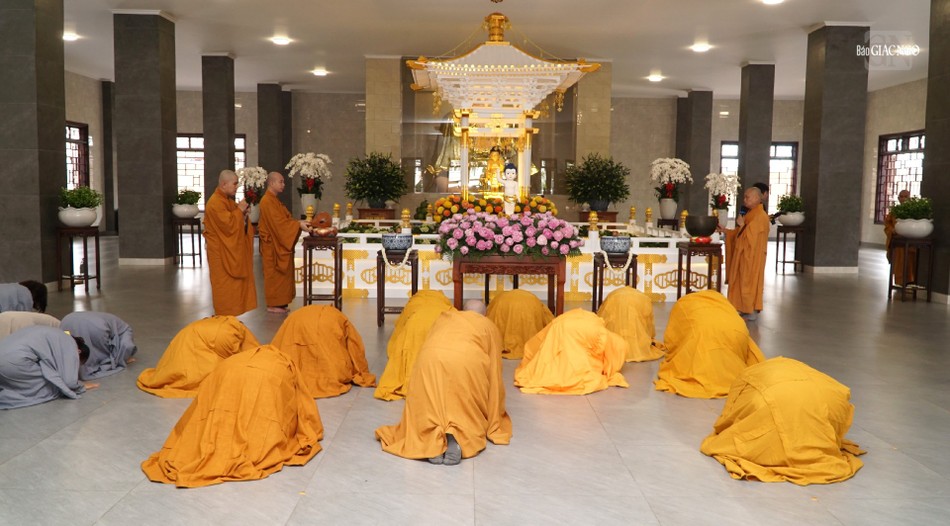 Tại buổi lễ, Hòa thượng Thích Lệ Trang đã niêm hương bạch Phật, cùng đại chúng đảnh lễ Tam bảo và tụng sám Khánh đản.