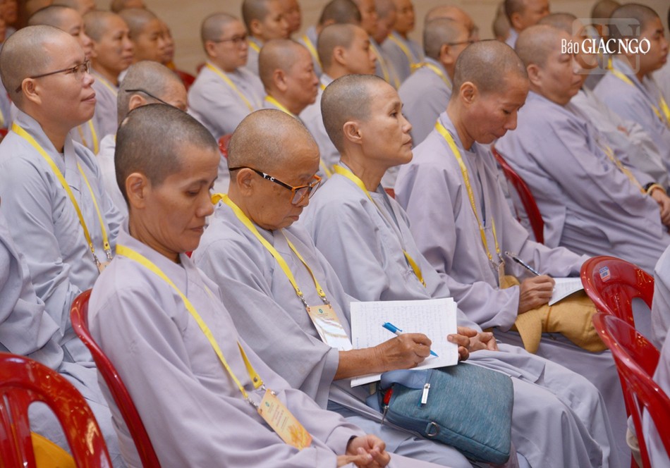 Hội chúng lắng nghe Hòa thượng Thích Lệ Trang đã giải thích về ý nghĩa và vai trò của nghi lễ trong đời sống thiền môn và văn hóa dân tộc |