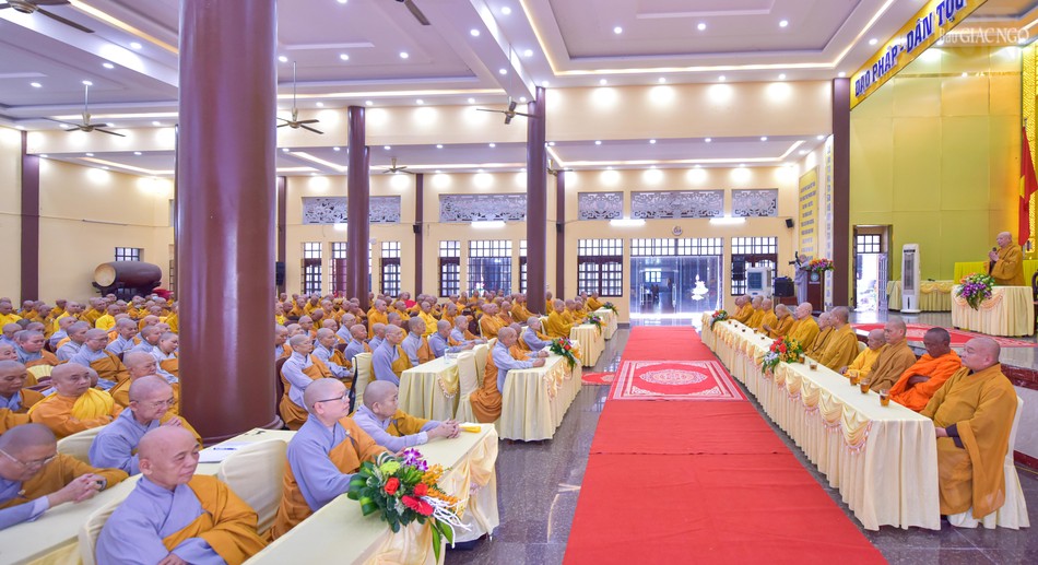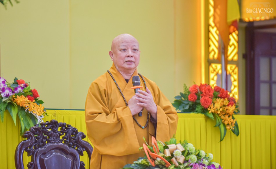 Đại diện Ban Chức sự trường hạ, Hòa thượng Thích Huệ Thông tri ân chuyến thăm của Hòa thượng Thích Lệ Trang và các thành viên Ban Thường trực Ban Trị sự TP.HCM và có lời sách tấn đến các hành giả đang an cư tại trường hạ tổ đình Hội Khánh.