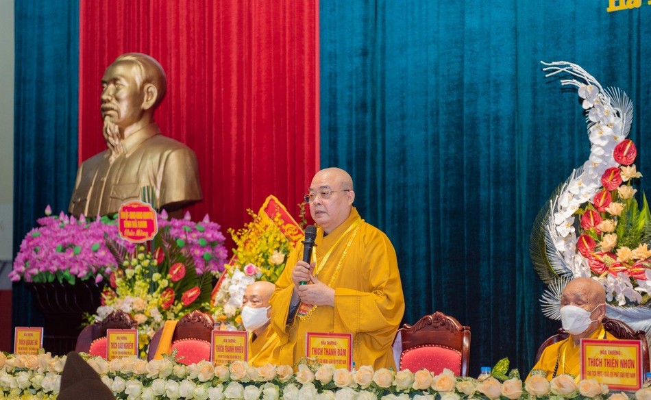 Sau nghi thức niệm Phật cầu gia hộ, chào Đạo kỳ, Quốc kỳ và dành một phút mặc niệm tưởng nhớ Chủ tịch Hồ Chí Minh, chư tiền bối hữu công đã viên tịch, đồng bào tử nạn do đại dịch Covid-19, Hòa thượng Thích Thanh Quyết phát biểu khai mạc bày tỏ Phật giáo Hà Nam thời gian qua đã không phụ sự tín nhiệm của các cơ quan Đảng, Nhà nước, Mặt trận Tổ quốc các cấp trong công tác từ thiện xã hội, phòng chống dịch bệnh Covid-19, vận động chức sắc, tín đồ và nhân dân tham gia bầu cử đại biểu Quốc hội khoá XV và đại biểu HĐND các cấp nhiệm kỳ 2021-2026, đoàn kết tôn giáo, đoàn kết dân tộc, góp phần củng cố khối đại đoàn kết toàn dân.