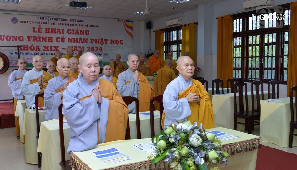 GNO - Sáng nay, 8-9, Hội đồng Điều hành Học viện Phật giáo VN tại TP.HCM đã tổ chức Lễ khai giảng năm học mới 2024-2025 cho tân sinh viên khóa XIX, tại cơ sở II (H.Bình Chánh). Đại lão Hòa thượng Thích Trí Quảng, Viện trưởng Học viện đã đến chứng minh và có lời sách tấn cho các Tăng Ni tân sinh viên.