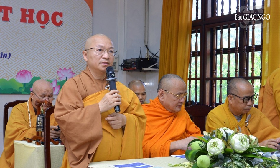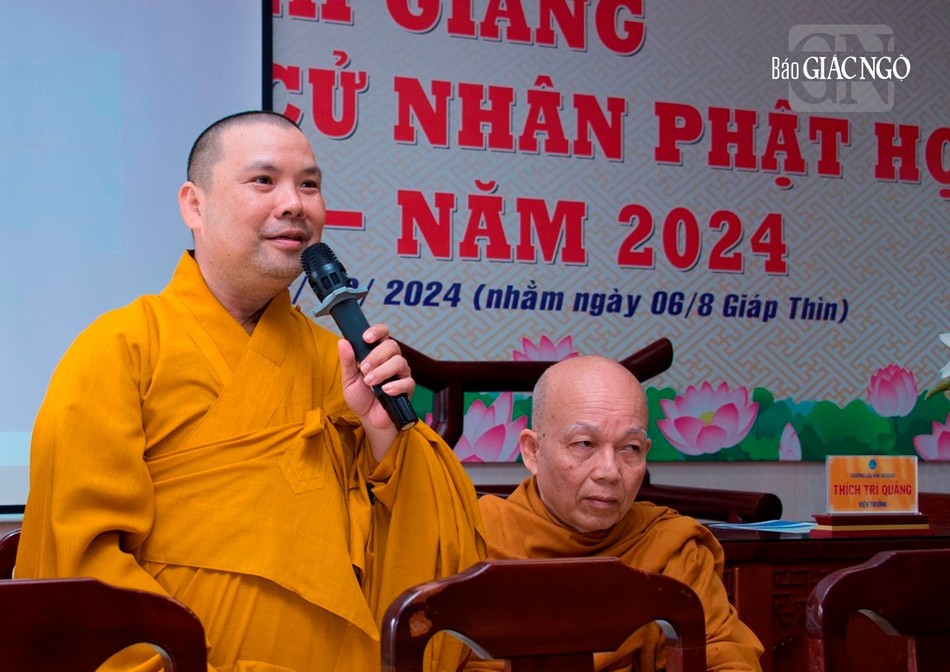 Ngài nhấn mạnh tầm quan trọng của việc học và tu song hành, qua kinh nghiệm của hệ thống Phật học viện của Phật giáo VN từ thời chấn hưng và đặc thù giáo dục đào tạo Phật giáo. "Ngoài việc được đào sâu về mảng tri thức, Tăng Ni sinh còn được rèn luyện các kỹ năng cần thiết, khép mình trong khuôn khổ thiền môn và thực tập pháp tu trong đời sống sinh hoạt nội trú tại Học viện.", Đại lão Hòa thượng nhắc nhở.