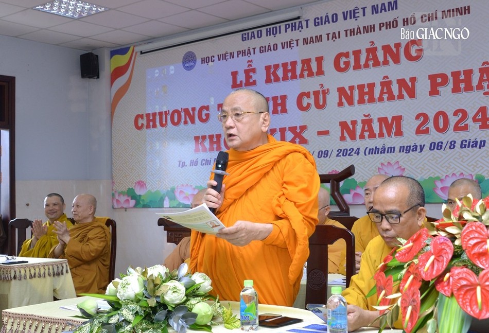Ban đạo từ tại lễ khai giảng, Đại lão Hòa thượng Viện trưởng nhắc lại quá trình hình thành và phát triển của Học viện Phật giáo VN tại TP.HCM, với tiền thân là Trường Cao cấp Phật học VN tại TP.HCM. Trải qua nhiều khóa đào tạo, tính đến thời điểm này, có hàng ngàn Tăng, Ni đã ra trường và đang đóng góp xây dựng cho Giáo hội ở các tỉnh thành trong nước và cả hải ngoại.