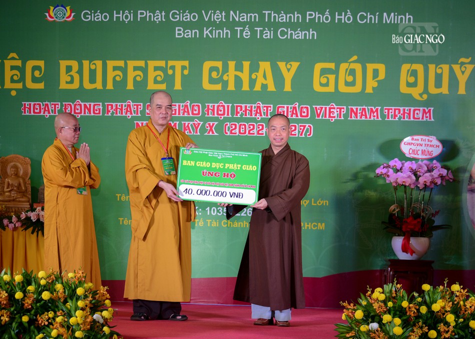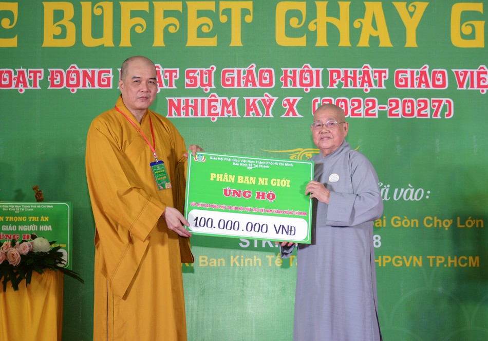 Số tiền thu được từ sự ủng hộ chư tôn đức Tăng Ni, Phật tử, mạnh thường quân tại chương trình buffet chay làm quỹ của Ban Kinh tế-Tài chính để hỗ trợ các hoạt động hành chánh, hoạt động Phật sự, các công tác từ thiện của Giáo hội TP.HCM, các ban chuyên môn, Ban Trị sự TP.Thủ Đức và 21 quận huyện và hoạt động của Ban Kinh tế-Tài chính.