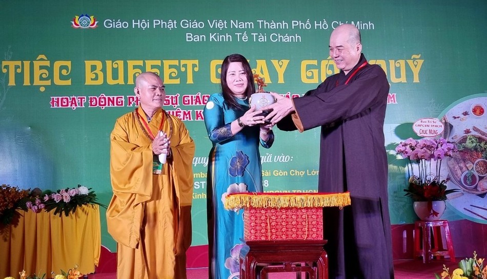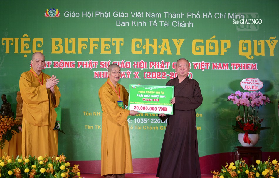 Được biết, buffet chay gây quỹ hoạt động Phật sự của Giáo hội TP.HCM được sự ủng hộ của gần 2.000 Tăng Ni, Phật tử, mạnh thường quân, doanh nghiệp. Ban Tổ chức cũng được sự ủng hộ về thực đơn gần 100 món ăn và thức uống của các ban chuyên môn trực thuộc Ban Trị sự TP.HCM, Ban Trị sự GHPGVN TP.Thủ Đức, các quận huyện, các tự viện, Phật tử đạo tràng Pháp Hoa.