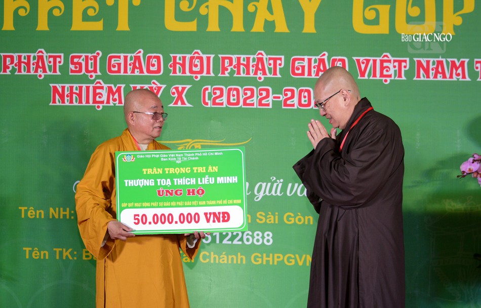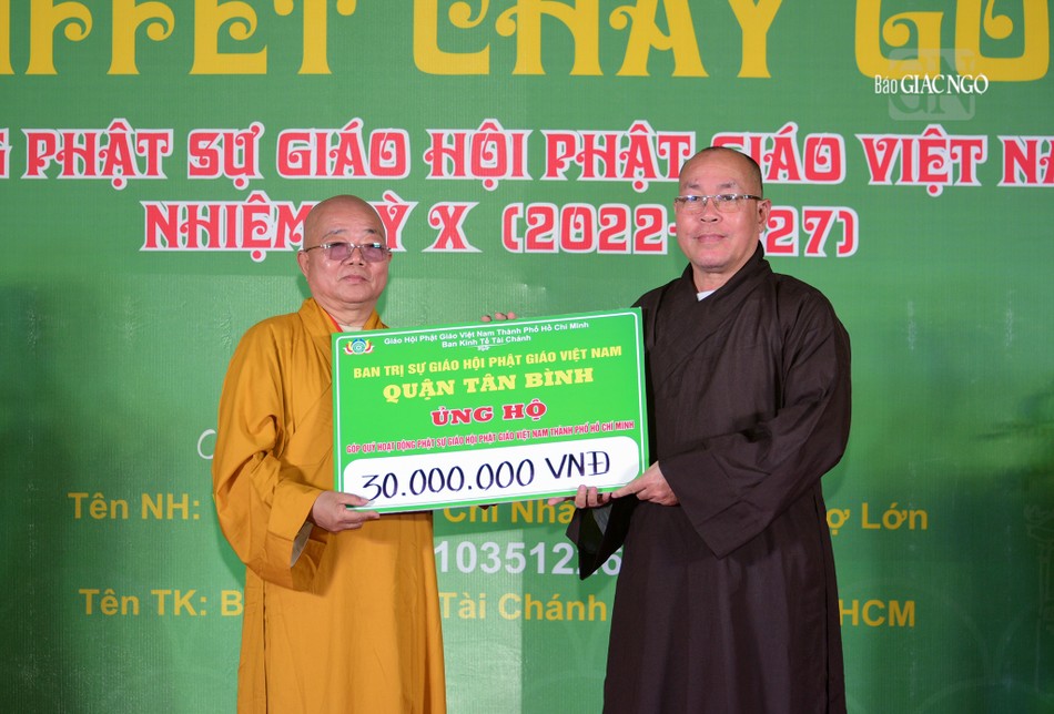 Tại chương trình, Ban Tổ chức đã trao bảng 200 triệu đồng đến Ban Trị sự GHPGVN TP.HCM để cúng dường niêm liễm đến TƯGH năm 2023.