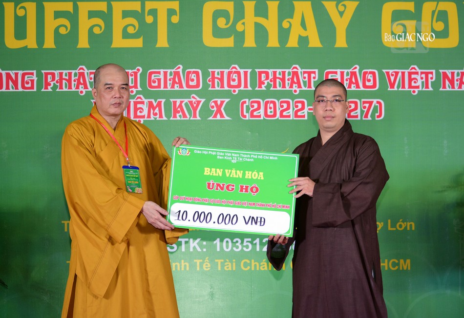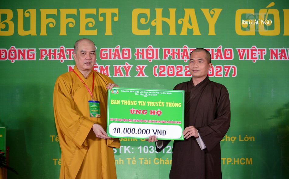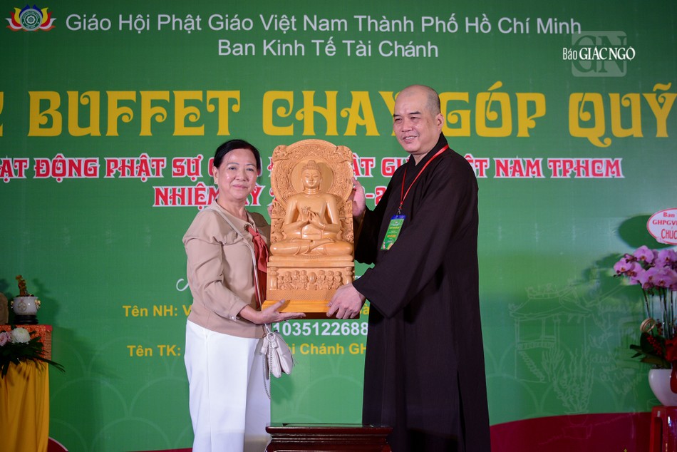 Tại buổi khai mạc buffet chay, Hòa thượng Thích Lệ Trang tặng đến Ban Tổ chức tôn tượng Đức Bổn Sư Thích Ca Mâu Ni. Ban Tổ chức tiếp nhận sự ủng hộ của Ban Thường trực Ban Trị sự GHPGVN TP.HCM 100 triệu đồng, Phân ban Ni giới TP.HCM cúng dường 100.000 triệu; Ni trưởng Thích nữ Từ Nhẫn, Trưởng Phân ban Ni giới TP.HCM, trụ trì chùa Phước Viên cúng dường 100 triệu đồng, chùa Pháp Võ ủng hộ 100 triệu đồng, cùng sự ủng hộ tài chính của lãnh đạo các ban chuyên môn, Ban Trị sự TP.Thủ Đức, các quận huyện, các tự viện…