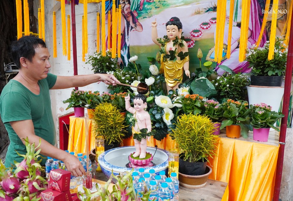 Nhiều năm cùng tham gia vào việc thiết trí lễ đài và tham gia Lễ Tắm Phật tại lễ đài tư gia nhà anh Võ Đăng Dũng, Phật tử Phạm Phi Định (pháp danh Thiện Thành, 71 tuổi) cho biết lễ đài là do gia đình anh Dũng đứng ra thiết trí nhưng bà con Phật tử quanh hẻm mỗi người đều cùng hùn phước có gì góp nấy để dâng lên cúng dường ngày Khánh đản của Đức Phật.