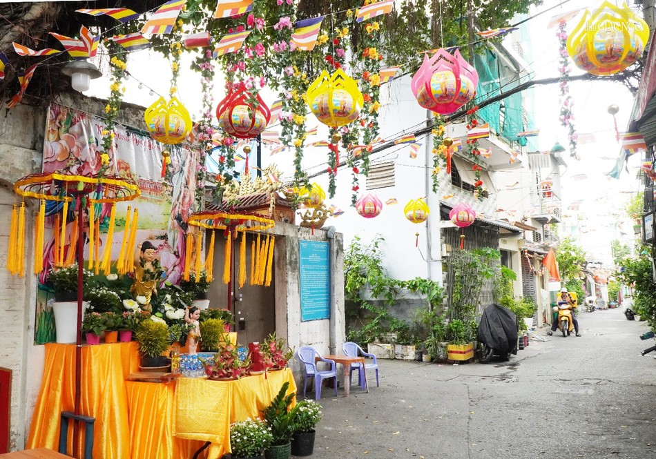 Ảnh lễ đài Phật đản tại hẻm 159 đường Trần Văn Đang: