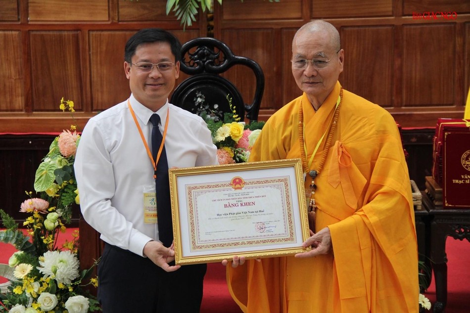 Ban Tôn giáo Chính phủ, UBND tỉnh Thừa Thiên Huế đã tặng Bằng khen đến tập thể và cá nhân có thành tích xuất sắc trong công tác xây dựng Học viện và đào tạo Tăng Ni.