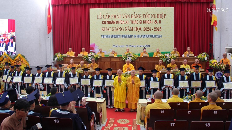 Tại buổi lễ, Thượng tọa Thích Nguyên Thành, Ủy viên Hội đồng Trị sự, Phó Viện trưởng Thường trực đọc quyết định công nhận Tăng Ni sinh viên khóa XI tốt nghiệp và sau đó, Hòa thượng Viện trưởng đã trực tiếp trao văn bằng Cử nhân Phật học đến các Tăng Ni sinh và học viên tốt nghiệp Thạc sĩ.
