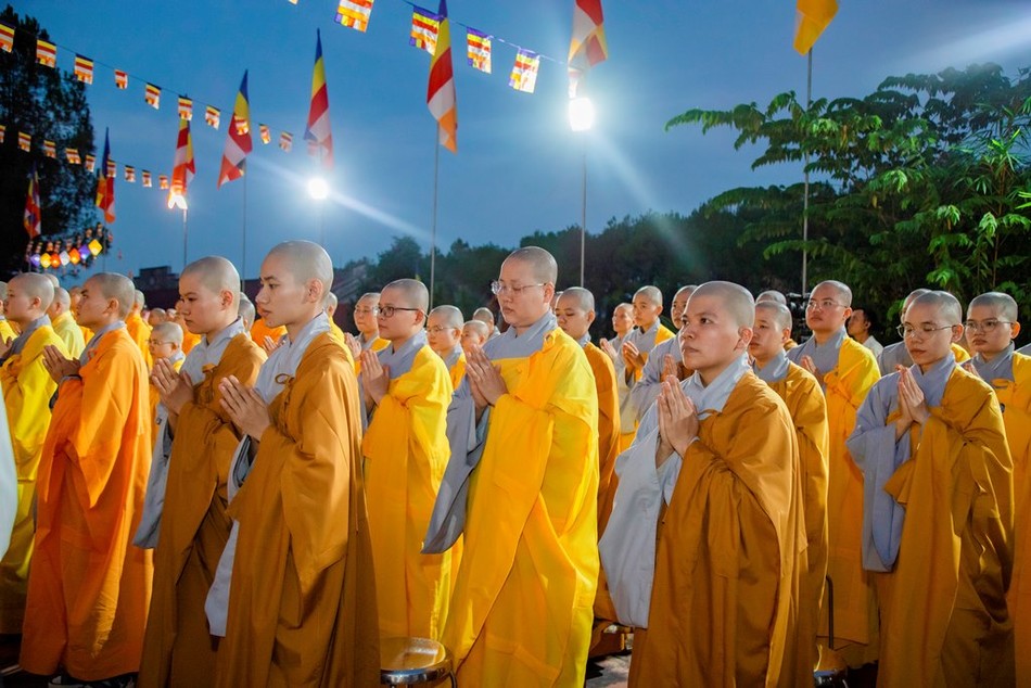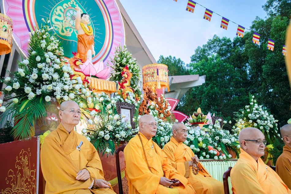 Hòa trong không khí thành kính, toàn thể hội chúng nhất tâm tụng sám Khánh đản và cử hành nghi thức Mộc dục truyền thống.