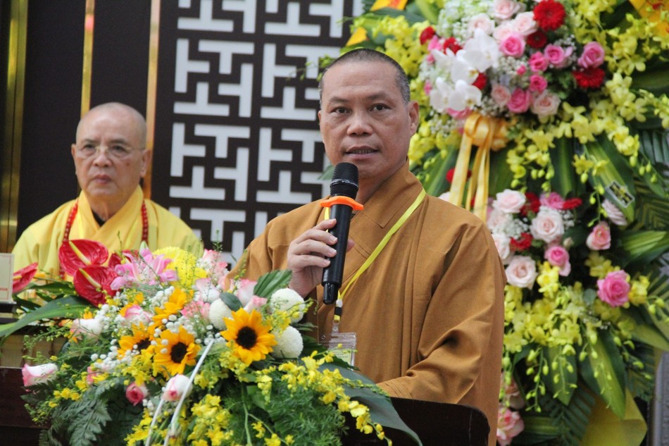 | Hòa thượng Thích Hải Ấn đọc diễn văn khai mạc |