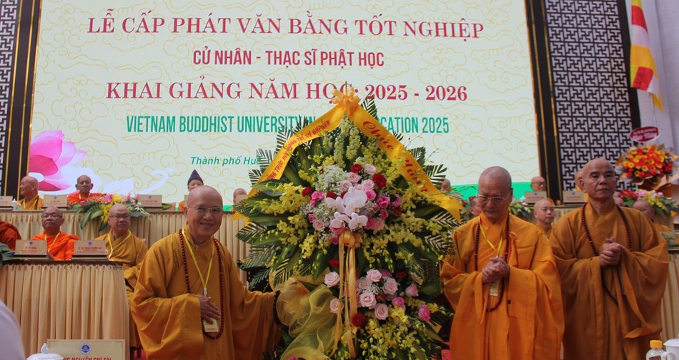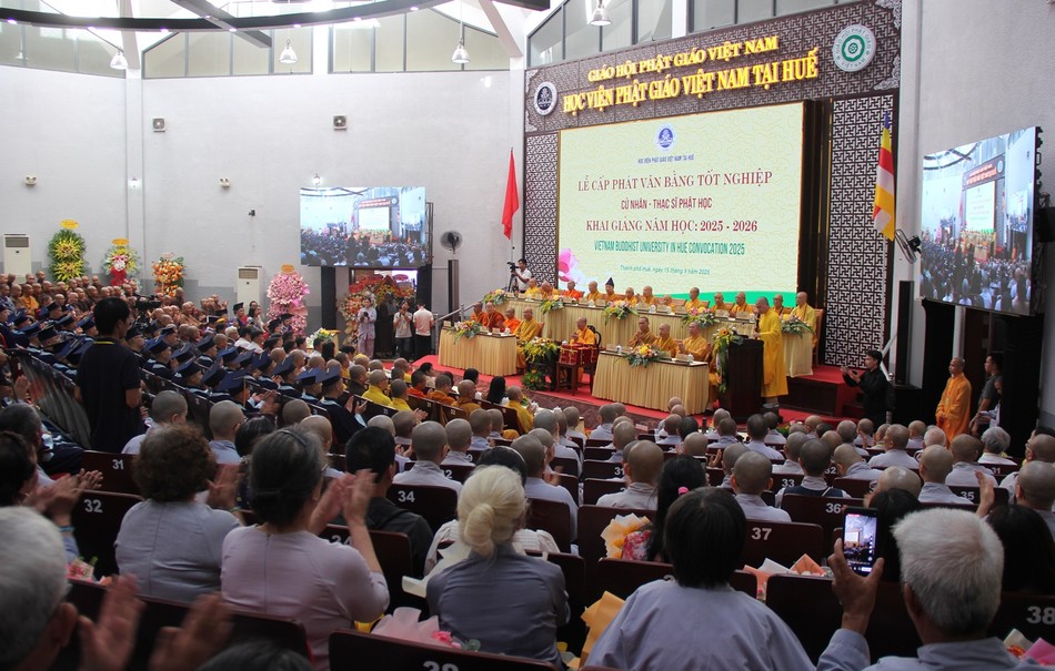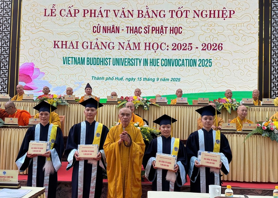 GNO - Sáng 15-9, tại hội trường Hoa Sen (Cơ sở 2, P.An Cựu, TP.Huế), Học viện Phật giáo VN tại Huế đã long trọng tổ chức Lễ tốt nghiệp, cấp phát bằng cử nhân Phật học khóa XII (2021-2025), thạc sĩ Phật học khóa II, III và tổng khai giảng năm học 2025-2026.