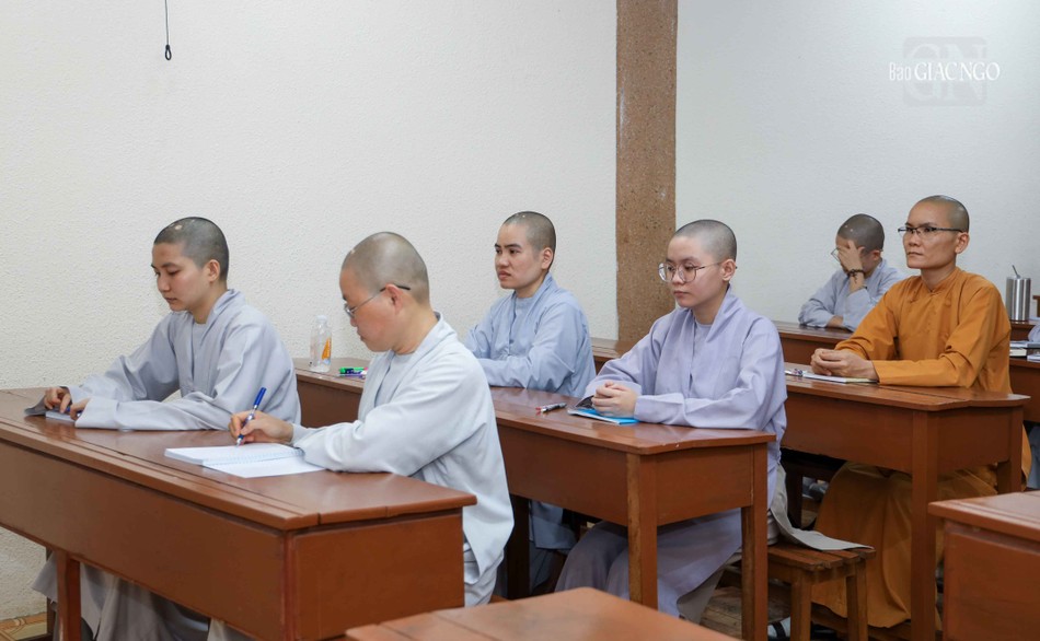 Sau lễ khai giảng, các học viên đã có buổi học đầu tiên dưới sự hướng dẫn của Đại đức TS.Thích Nguyên Tấn.