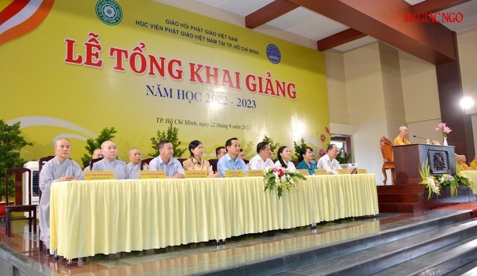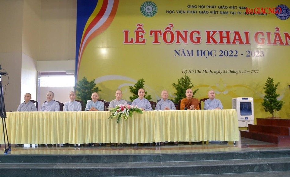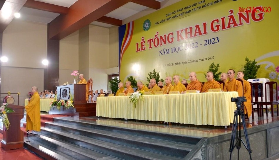 Sáng nay 22-9, tại đại giảng đường thuộc tòa chánh điện Học viện Phật giáo VN tại TP.HCM (cơ sở II, xã Lê Minh Xuân, huyện Bình Chánh), Hội đồng Điều hành Học viện đã tổ chức tổng khai giảng năm học 2022-2023, giới thiệu các khoa cho tân sinh viên khóa XVII.