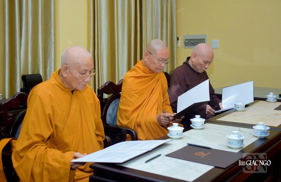 Chư vị Trưởng lão cũng xem xét, thảo luận và thống nhất chương trình họp của Ban Thường trực Hội đồng Chứng minh; chương trình Đại nghị của Hội đồng Chứng minh tại Việt Nam Quốc Tự, vào ngày 9 và 10-11-Quý Mão (21 và 22-12-2023).