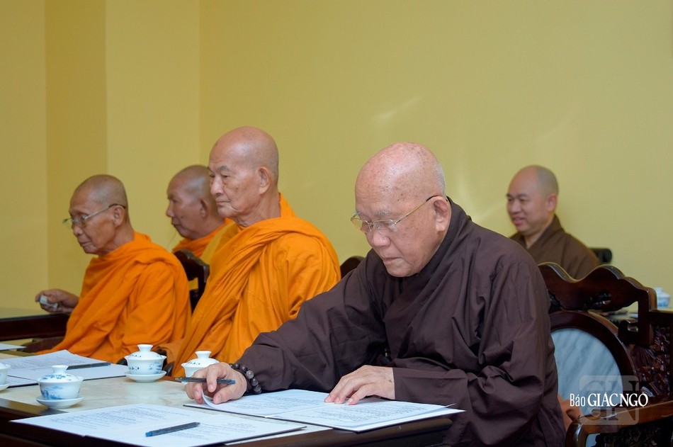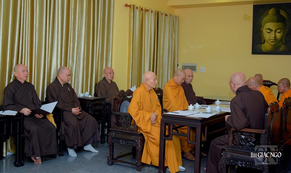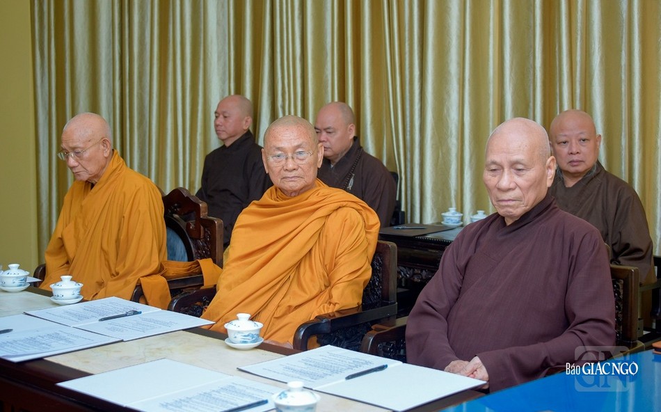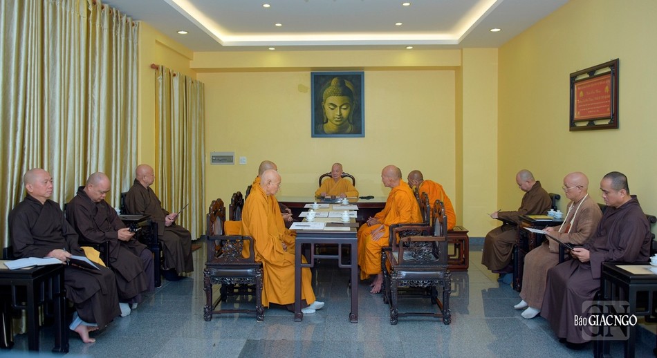 Quang cảnh buổi họp ngày 16-11 do Đức Pháp chủ GHPGVN chủ trì, chuẩn bị cho Đại nghị lần đầu tiên và Lễ tưởng niệm chư vị giáo phẩm Thành viên Hội đồng Chứng minh đã viên tịch qua các thời kỳ - Ảnh: Quảng Đạo/BGN