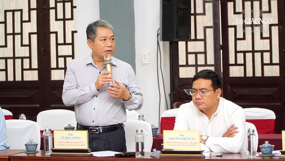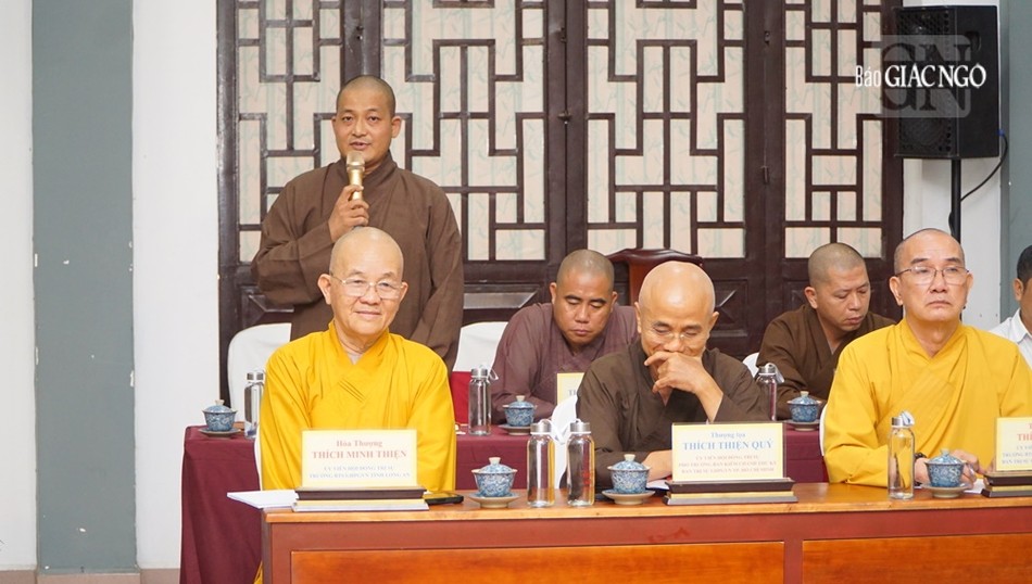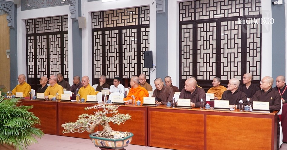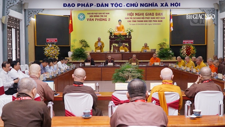 Chư tôn đức chủ tọa hội nghị giao ban gồm Hòa thượng Thích Huệ Thông, Phó Chủ tịch Hội đồng Trị sự, Trưởng ban Pháp chế T.Ư; Thượng tọa Thích Phước Nguyên, Phó Tổng Thư ký Hội đồng Trị sự kiêm Chánh Văn phòng 2 T.Ư; Thượng tọa Thích Minh Nhẫn, Ủy viên Thư ký Hội đồng Trị sự, Phó Văn phòng 2 T.Ư, cùng các vị tôn đức Văn phòng 2, đại diện Ban Pháp chế T.Ư, Ban Kiểm soát T.Ư; chư vị đại diện Ban Trị sự TP.HCM, Long An, Vĩnh Long, cùng đại diện các cơ quan chức năng của 3 tỉnh thành đã trao đổi, thảo luận các vấn đề còn vướng mắc, khó khăn, tồn đọng tại 3 tỉnh thành gồm: TP.HCM, Long An, Vĩnh Long làm sáng rõ nhiều vấn đề, có những góp ý cũng như đề xuất phương án giải quyết cụ thể từng trường hợp trên tinh thần "đồng hành".