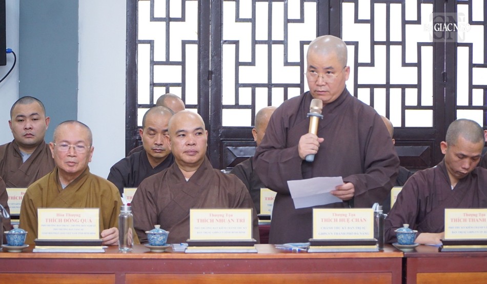 Hòa thượng Thích Khế Chơn, Phó Chủ tịch Hội đồng Trị sự; Thượng tọa Thích Phước Nguyên, Phó Tổng Thư ký Hội đồng Trị sự kiêm Chánh Văn phòng 2 T.Ư; Thượng tọa Thích Minh Nhẫn, Ủy viên Thư ký Hội đồng Trị sự, Phó Văn phòng 2 T.Ư chủ tọa hội nghị giao ban; cùng tham dự của chư tôn đức Văn phòng 2 T.Ư, đại diện Ban Pháp chế T.Ư, Ban Kiểm soát T.Ư, chư tôn đức 4 đơn vị Ban Trị sự GHPGVN tỉnh và lãnh đạo các cơ quan chức năng của 4 tỉnh thành: TP.Đà Nẵng, Bình Định, Khánh Hòa và Phú Yên.