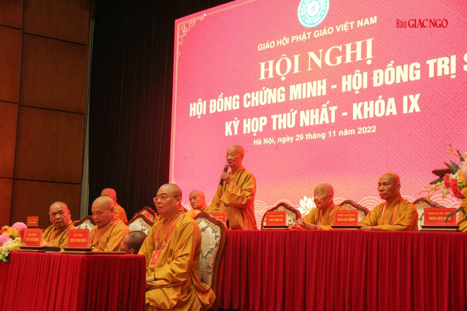 Hòa thượng Thích Thiện Nhơn, Chủ tịch Hội đồng Trị sự phát biểu khai mạc Hội nghị. Theo đó, tuân thủ Hiến chương của Giáo hội, tại phiên họp thứ 3 ngày 29-11, Đại hội đại biểu Phật giáo toàn quốc lần IX đã nhất tâm suy tôn Hội đồng Chứng minh gồm 112 vị, suy cử Hội đồng Trị sự nhiệm kỳ gồm 235 vị.