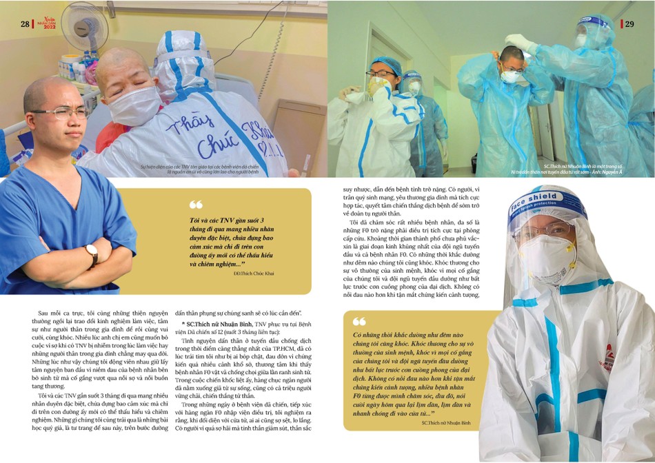 Tình nguyện dấn thân ở tuyến đầu chống dịch trong thời điểm căng thẳng nhất của TP.HCM, đã có lúc trái tim tôi như bị ai bóp chặt, đau đớn vì chứng kiến quá nhiều cảnh khổ sở, thương tâm khi thấy bệnh nhân F0 vật vã chống chọi giữa lằn ranh sinh tử. Trong cuộc chiến khốc liệt ấy, hàng chục ngàn người đã nằm xuống giã từ sự sống, cũng có cả triệu người vững chãi, chiến thắng tử thần.