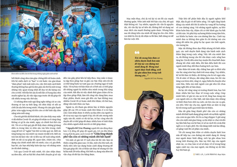 * Nguyễn Đỗ Trúc Phương, người đã vận động được hơn 5 tỷ đồng để giúp đỡ người già, trẻ em khó khăn trong thời kỳ giãn cách Covid-19: “Giữa lòng thành phố vẫn còn có những mảnh đời bất hạnh”