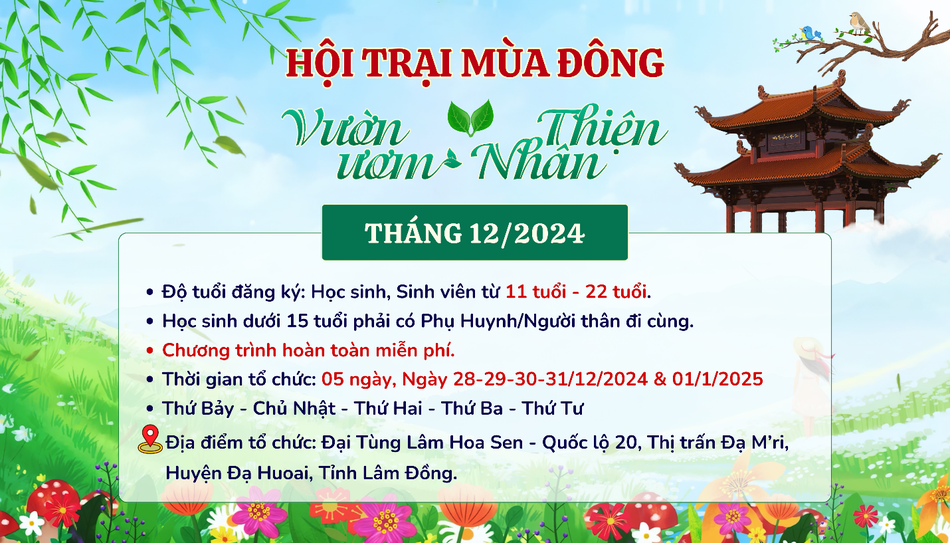 Hội trại dành cho Thanh thiếu niên từ 11đến 22 tuổi (học sinh dưới 15 tuổi bắt buộc phải có phụ huynh hoặc người thân, người giám hộ đi cùng).
