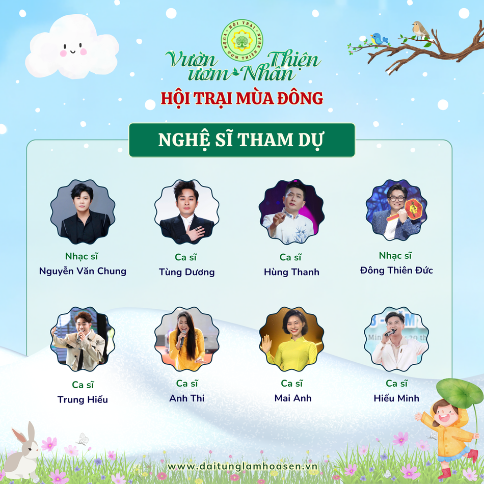 Bên cạnh đó, chương trình còn có sự góp mặt của các ca sĩ nổi tiếng như: Tùng Dương, Hùng Thanh, Trung Hiếu; nhạc sĩ Nguyễn Văn Chung, Đông Thiên Đức,…