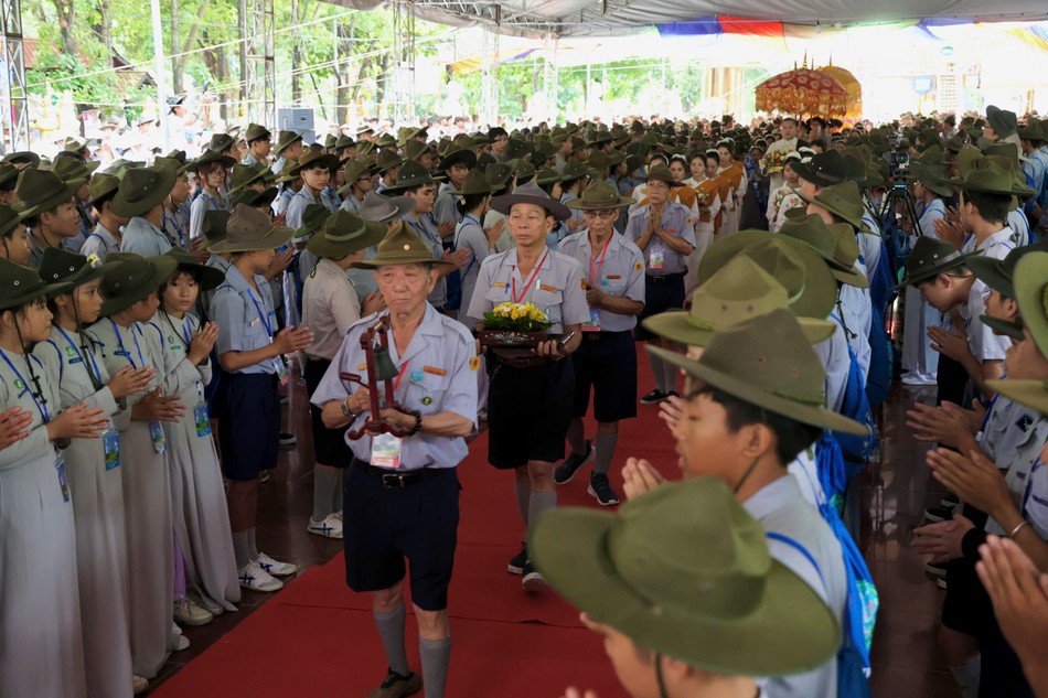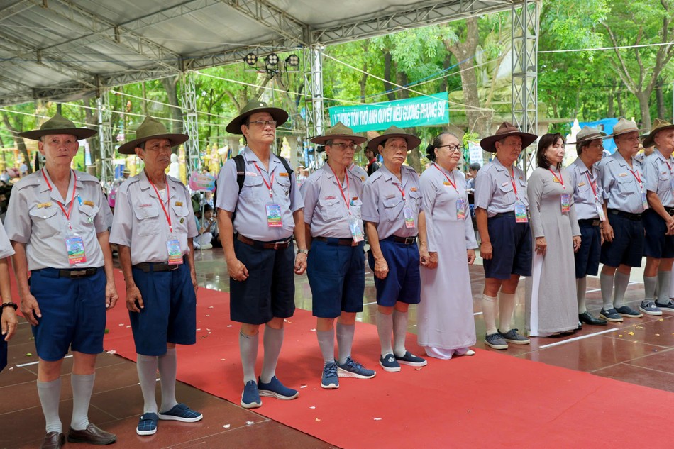 "Hôm nay nhìn thấy các anh chị đoàn sinh vẫn gìn giữ, kế thừa những giá trị cao đẹp này, điều đó có nghĩa là chiếc áo lam vẫn tồn tại, chiếc áo lam vẫn tung bay khắp chốn, thể hiện sự tinh khiết của Gia đình Phật tử", Hòa thượng nhấn mạnh.