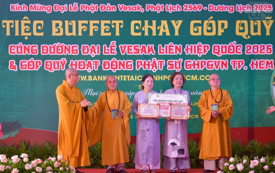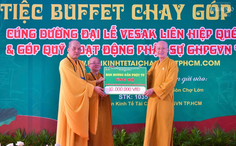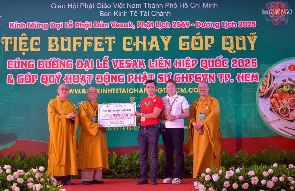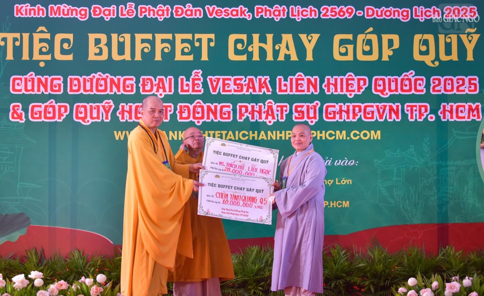 Theo Ban Tổ chức, buffet chay gây quỹ cúng dường Đại lễ Vesak 2025, Phật đản của Phật giáo TP.HCM được sự ủng hộ tham dự của hơn 2.000 Tăng Ni, Phật tử, mạnh thường quân, doanh nghiệp.