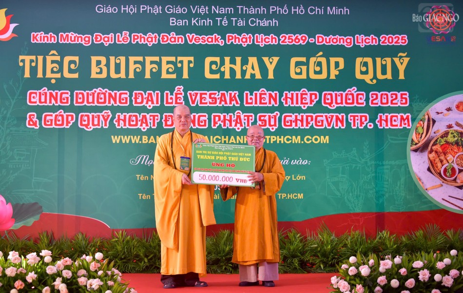 Tại chương trình, Ban Kinh tế - Tài chánh GHPGVN TP.HCM đã trao bảng cúng dường 1 tỷ đồng đến đại diện Ban Trị sự GHPGVN TP.HCM để cúng dường đến Đại lễ Vesak 2025 và Phật đản Phật lịch 2569.