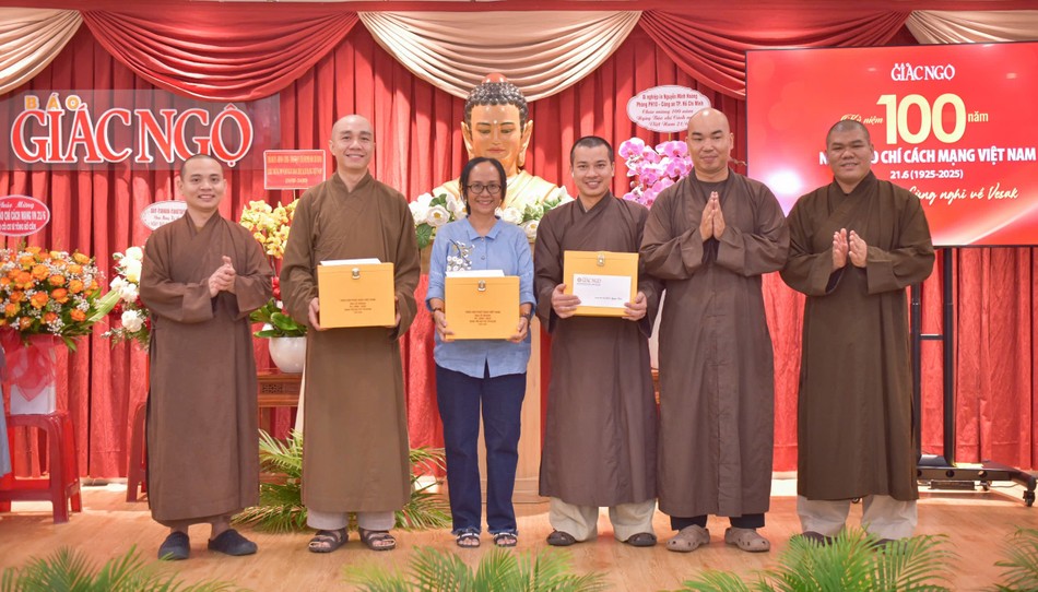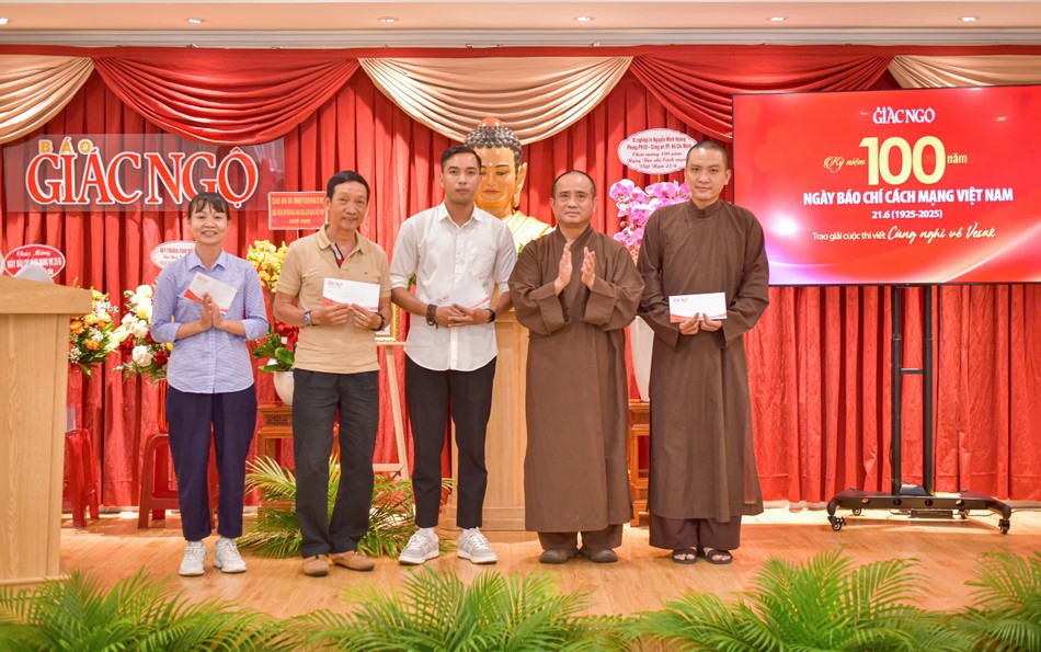 Hòa trong niềm vui ngày họp mặt, Câu lạc bộ Phóng viên - Cộng tác viên Báo Giác Ngộ công bố và trao giải cuộc thi viết “Cùng nghĩ về Vesak” đến các tác giả tham dự. Báo Giác Ngộ cũng chúc mừng Thượng tọa Thích Chúc Phú và Thượng tọa Thích Quảng Tánh được Hội Nhà báo Việt Nam trao tặng Kỷ niệm chương “Vì sự nghiệp báo chí Việt Nam” - phần thưởng cao quý ghi nhận đóng góp cho hoạt động báo chí.