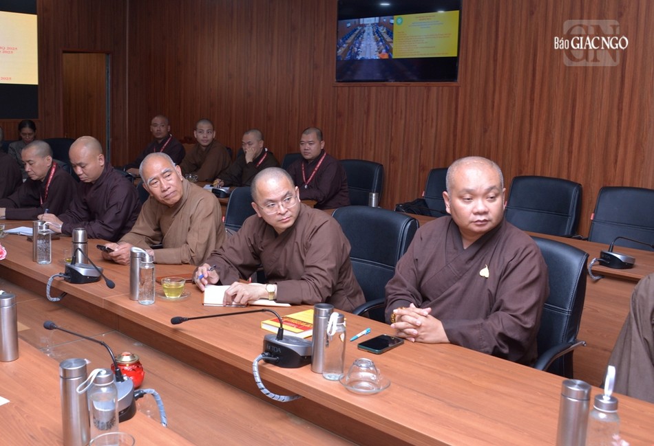 Buổi họp do Thượng tọa Thích Đức Thiện, Phó Chủ tịch kiêm Tổng Thư ký Hội đồng Trị sự chủ trì, cùng chủ tọa có chư vị Phó Chủ tịch Hội đồng Trị sự: Hòa thượng Thích Thiện Tâm, Hòa thượng Thích Huệ Thông và Thượng tọa Thích Thanh Phong; cùng sự tham dự của chư tôn đức Ban Thư ký Hội đồng Trị sự, Hội đồng Điều hành Học viện Phật giáo VN tại TP.HCM, Văn phòng I, Văn phòng II T.Ư, Ban Trị sự GHPGVN TP.HCM...