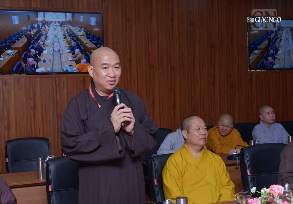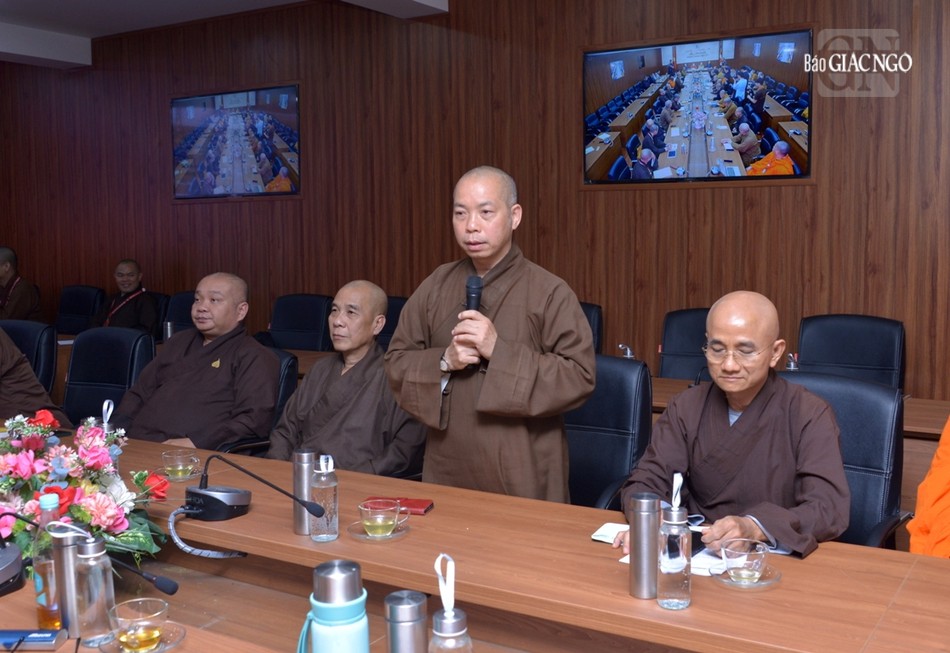 Phát biểu khai mạc tại buổi họp, Thượng tọa Thích Đức Thiện cho biết buổi họp liên quan đến công tác đăng cai tổ chức Vesak Liên Hiệp Quốc 2025 tại TP.HCM, đây là Đại lễ Vesak lần thứ 4 do GHPGVN đăng cai tổ chức. Đại lễ Vesak lần này được GHPGVN đăng cai tổ chức tại TP.HCM, đặc biệt thể hiện sự đồng hành của Phật giáo Việt Nam với dân tộc, với phương châm “Đạo pháp - Dân tộc - Chủ nghĩa xã hội” trong việc hướng đến chào mừng Kỷ niệm 50 năm ngày giải phóng miền Nam, thống nhất đất nước.