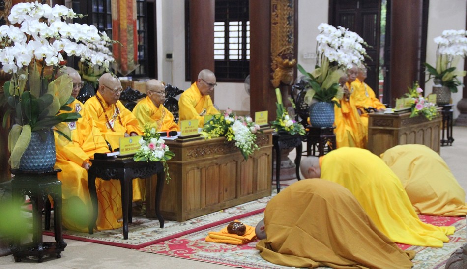 Chiều cùng ngày, vào lúc 14g sẽ diễn ra lễ tấn đàn truyền giới cho các giới tử thọ Thập thiện, Bồ-tát giới, nhiên hương cúng dường và bế mạc giới đàn.