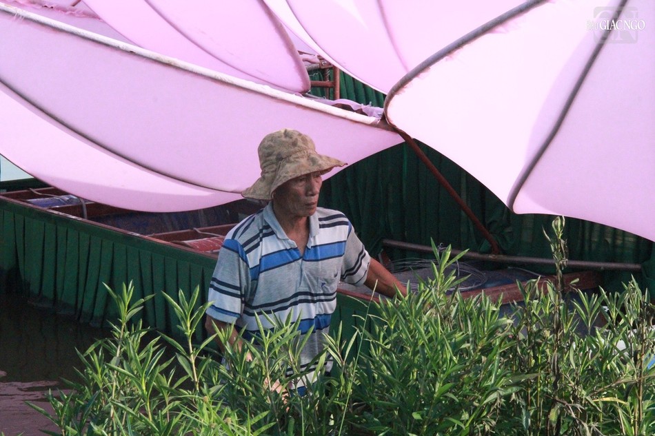 Tại đây, các kỹ thuật viên tiến hành lắp ráp hoàn thiện 7 hoa sen, mỗi hoa sen với đường kính 7,6 mét, cao gần 4 mét, trọng lượng 3 tạ/mỗi đóa, được hạ thủy, thuyền kéo đến vị trí theo thiết kế và định vị trên dòng sông Hương. Khoảng cách giữa hai đóa hoa sen là 20 mét.