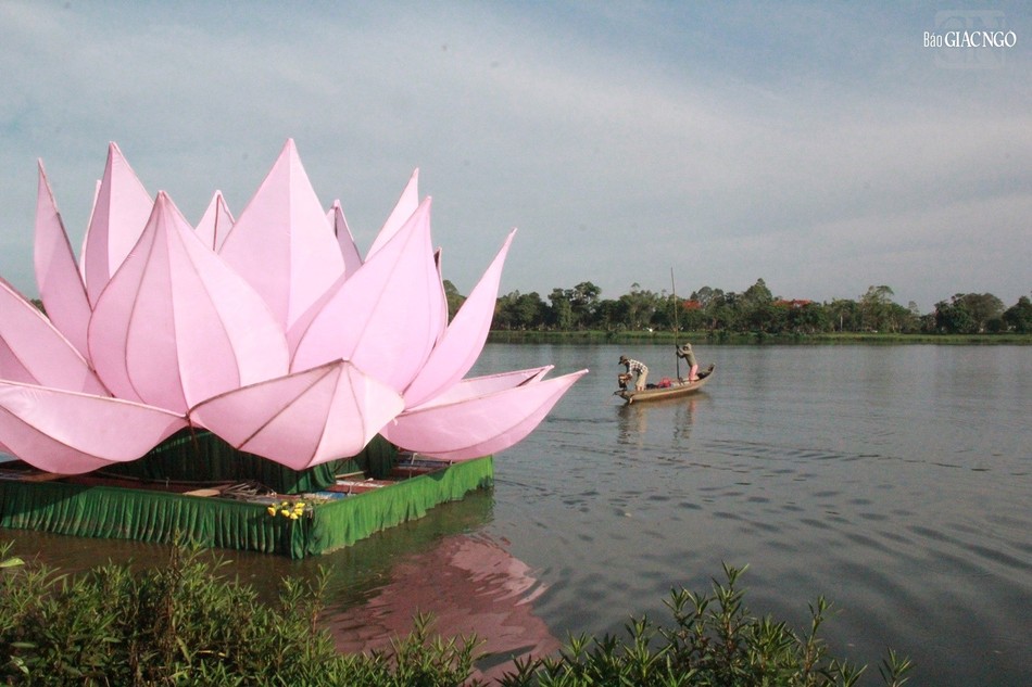Trước đó, 168 cánh sen được Ni sinh Học viện Phật giáo VN tại Huế thực hiện dán vải lên các bộ khung sườn cánh sen, sau đó di chuyển từ Học viện về tập kết tại công viên bia Quốc Học.