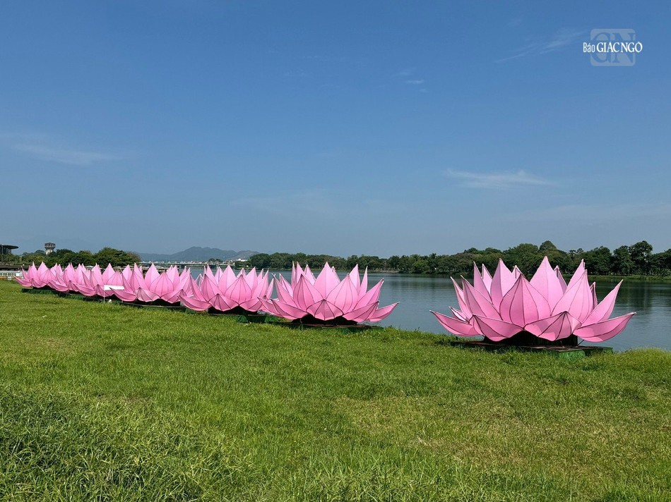 Tại đây, các kỹ thuật viên tiến hành lắp ráp hoàn thiện 7 hoa sen, mỗi hoa sen với đường kính 7,6 mét, cao gần 4 mét, trọng lượng 3 tạ/mỗi đóa, được hạ thủy, thuyền kéo đến vị trí theo thiết kế và định vị trên dòng sông Hương. Khoảng cách giữa hai đóa hoa sen là 20 mét ở trung tâm dòng sông, trên mỗi hoa có máy phát điện độc lập, bảo đảm nguồn sáng, an toàn và không ảnh hưởng đến giao thông đường thủy qua lại.