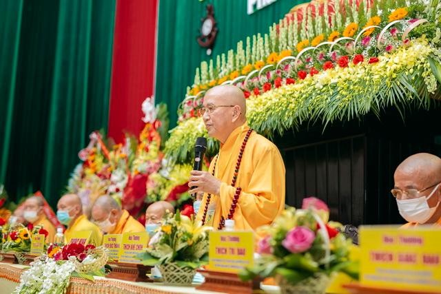Phát biểu khai mạc, Đại đức Thích Nhật Tuệ, Trưởng ban Trị sự GHPGVN huyện Phú Vang, Trưởng Ban Tổ chức đã điểm lại những dấu ấn và đặc điểm của Phật giáo ở huyện nhà cũng như nhân duyên đưa đến các thành tựu Phật sự trong nhiệm kỳ 2016-2021.