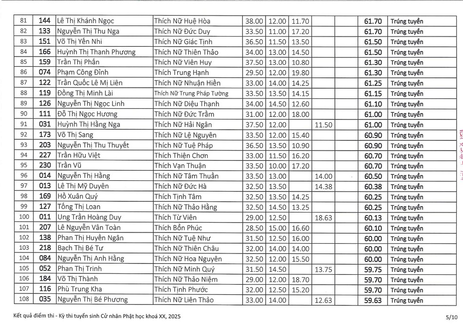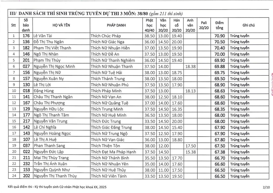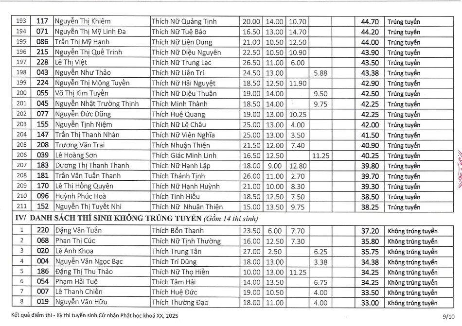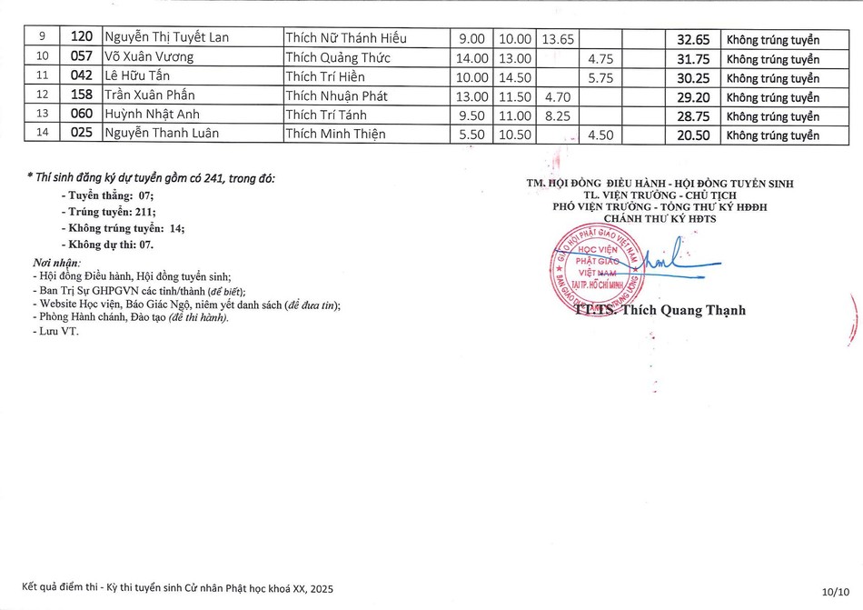 Theo đó, có 241 thí sinh đăng ký dự thi, trong đó, có 7 thí sinh đủ điều kiện tuyển thẳng; 211 thí sinh trúng tuyển, 14 thí sinh không trúng tuyển và 7 thí sinh không dự thi.