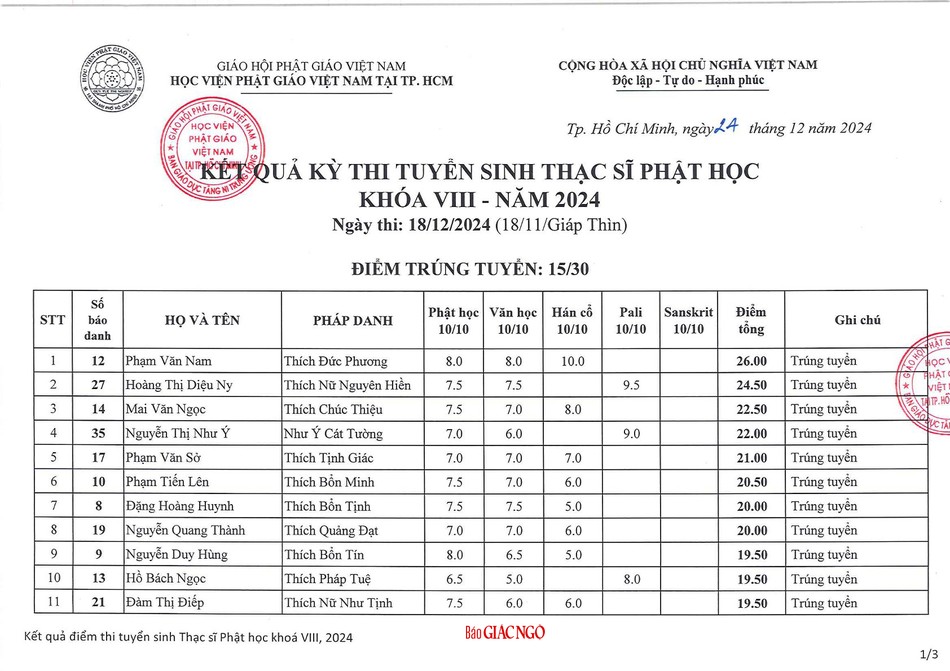 Giác Ngộ online giới thiệu thông tin này đến chư Tăng Ni, bạn đọc quan tâm.