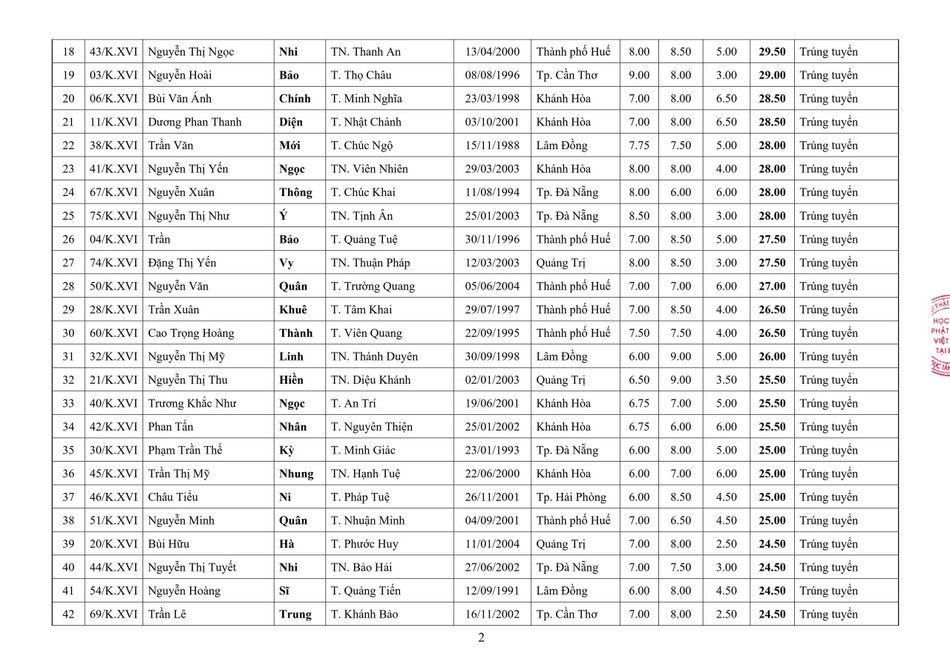 Theo đó, điểm trúng tuyển cử nhân Phật học khóa XVI (2025-2029) là 18/40, môn Phật pháp căn bản (hệ số 2), Văn học Việt Nam và Ngoại ngữ (hệ số 1).