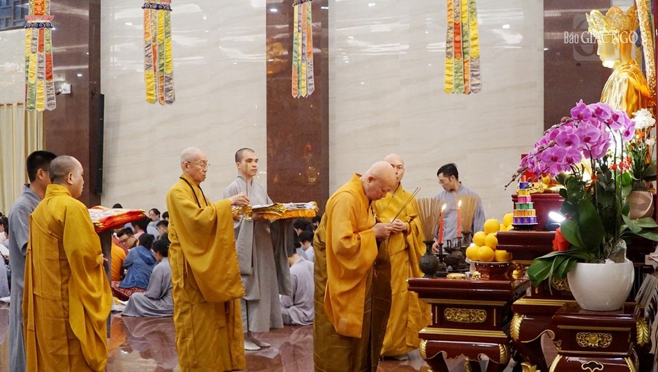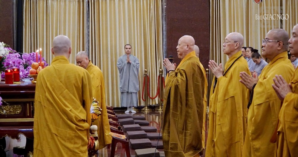 Theo đó, Hòa thượng Thích Lệ Trang, Trưởng ban Nghi lễ T.Ư, Trưởng ban Trị sự GHPGVN TP.HCM, Trưởng ban Tổ chức đã niêm hương tham lễ chư Phật. Hòa thượng sám chủ, cùng chư tôn đức Ban Trị sự, Ban Nghi lễ cử hành nghi thức niêm hương đàn tràng Pháp hội Vu lan được trần thiết trang nghiêm ở hội trường và sảnh chính của Việt Nam Quốc Tự.