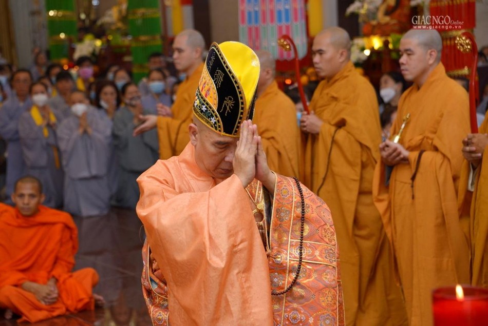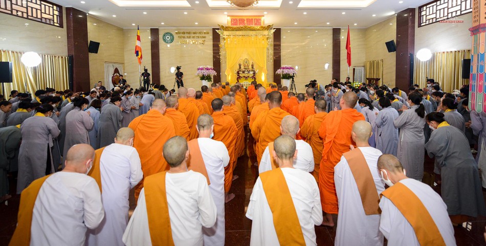 Trong giờ phút thiêng liêng tại chánh điện Việt Nam Quốc Tự, Trưởng lão Hòa thượng Quyền Pháp chủ GHPGVN đã đại diện chư tôn giáo phẩm Hội đồng Chứng minh niêm hương bạch Phật. Thượng tọa Thích Quảng Chơn, Trưởng ban Nghi lễ TP.HCM đã dẫn lễ cùng chư tôn đức Hội đồng Chứng minh, Hội đồng Trị sự, Ban Trị sự GHPGVN TP.HCM, TP.Thủ Đức, 21 quận huyện, lãnh đạo TP.HCM, quận 10 dâng hương tưởng niệm, cầu nguyện chư hương linh đồng bào tử vong, anh linh cán bộ, chiến sĩ, lực lượng tuyến đầu hy sinh trong đại dịch Covid-19. Tất cả một lòng cầu nguyện chư hương linh vượt qua ải khổ, siêu tiến về cõi tịnh, cầu nguyện đất nước thái bình, nhà nhà an cư lạc nghiệp.
