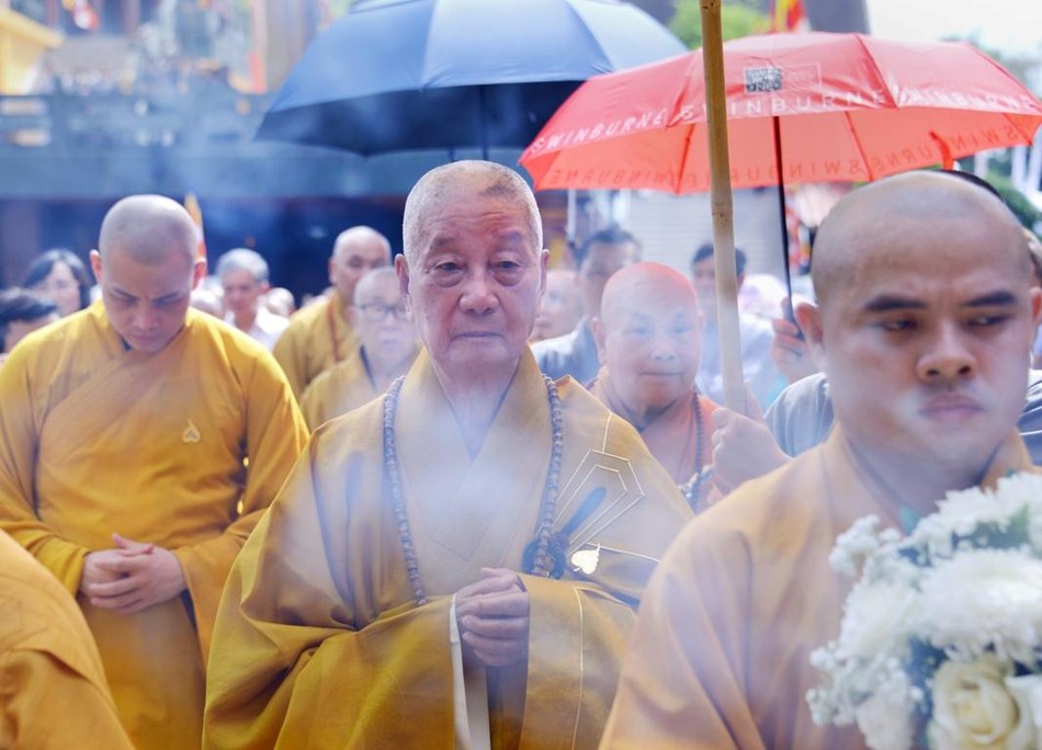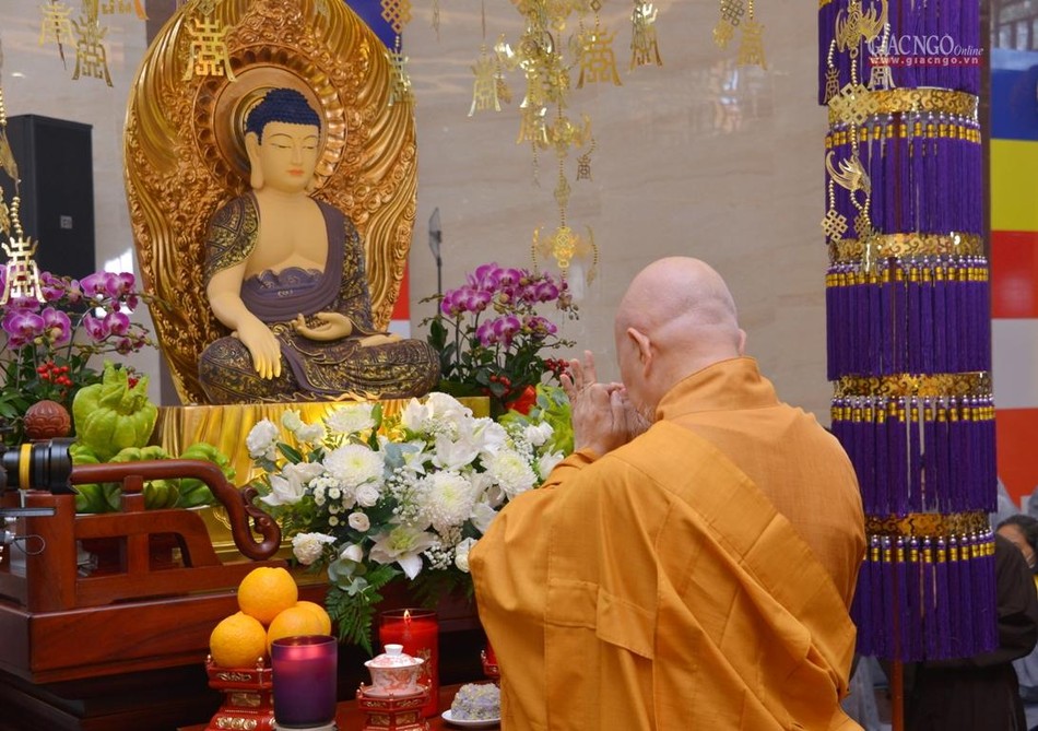 Trưởng lão Hòa thượng Quyền Pháp chủ GHPGVN đã đại diện chư tôn giáo phẩm Hội đồng Chứng minh niêm hương bạch Phật |
