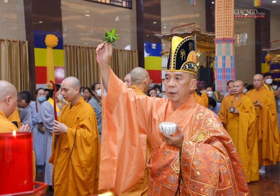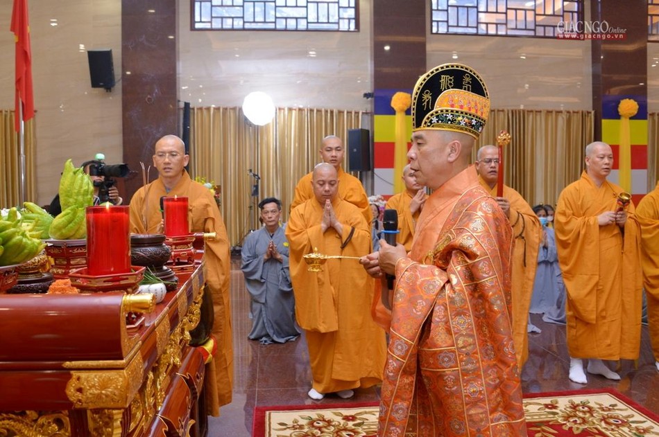 Hòa thượng Thích Lệ Trang, Trưởng ban Trị sự GHPGVN TP.HCM đã niêm đàn sái tịnh, bạch Phật khai kinh |