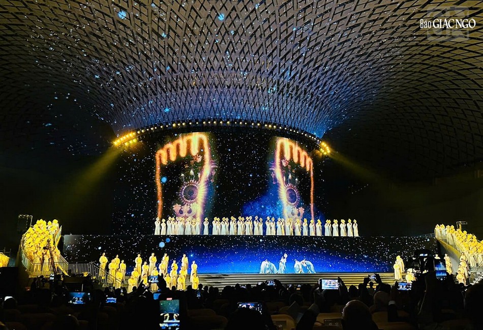 Phiên khai mạc trọng thể của Diễn đàn Phật giáo thế giới lần thứ 6 được tiếp nối bằng chương trình nghệ thuật Phật giáo đặc sắc với sự tham gia biểu diễn của hàng trăm sinh viên các trường nghệ thuật, tái hiện lại hành trình lan tỏa của Phật giáo khắp toàn cầu, chung tay xây dựng hòa bình và sống chung hòa hợp trên toàn thế giới.