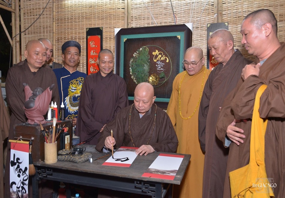 Thượng tọa Thích Trí Chơn, Trưởng ban Văn hóa GHPGVN TP.HCM, Trưởng ban Tổ chức phát biểu khai mạc cho biết thực hiện chỉ đạo của Ban Trị sự GHPGVN TP.HCM, Ban Văn hóa Phật giáo TP.HCM tổ chức thực hiện 2 chương trình nhân dịp Tết cổ truyền Giáp Thìn: Tổ chức hội chợ văn hóa phẩm Phật giáo từ ngày 17 đến 25 tháng Chạp năm Quý Mão (27-1 đến 4-2-2024) tại chùa Phổ Quang (Q.Tân Bình) và chương trình "Phố ông đồ - nghệ thuật thư pháp" từ ngày 25 tháng Chạp đến hết tháng Giêng năm Giáp Thìn (ngày 4 đến 24-2-2024), tại Việt Nam Quốc Tự.